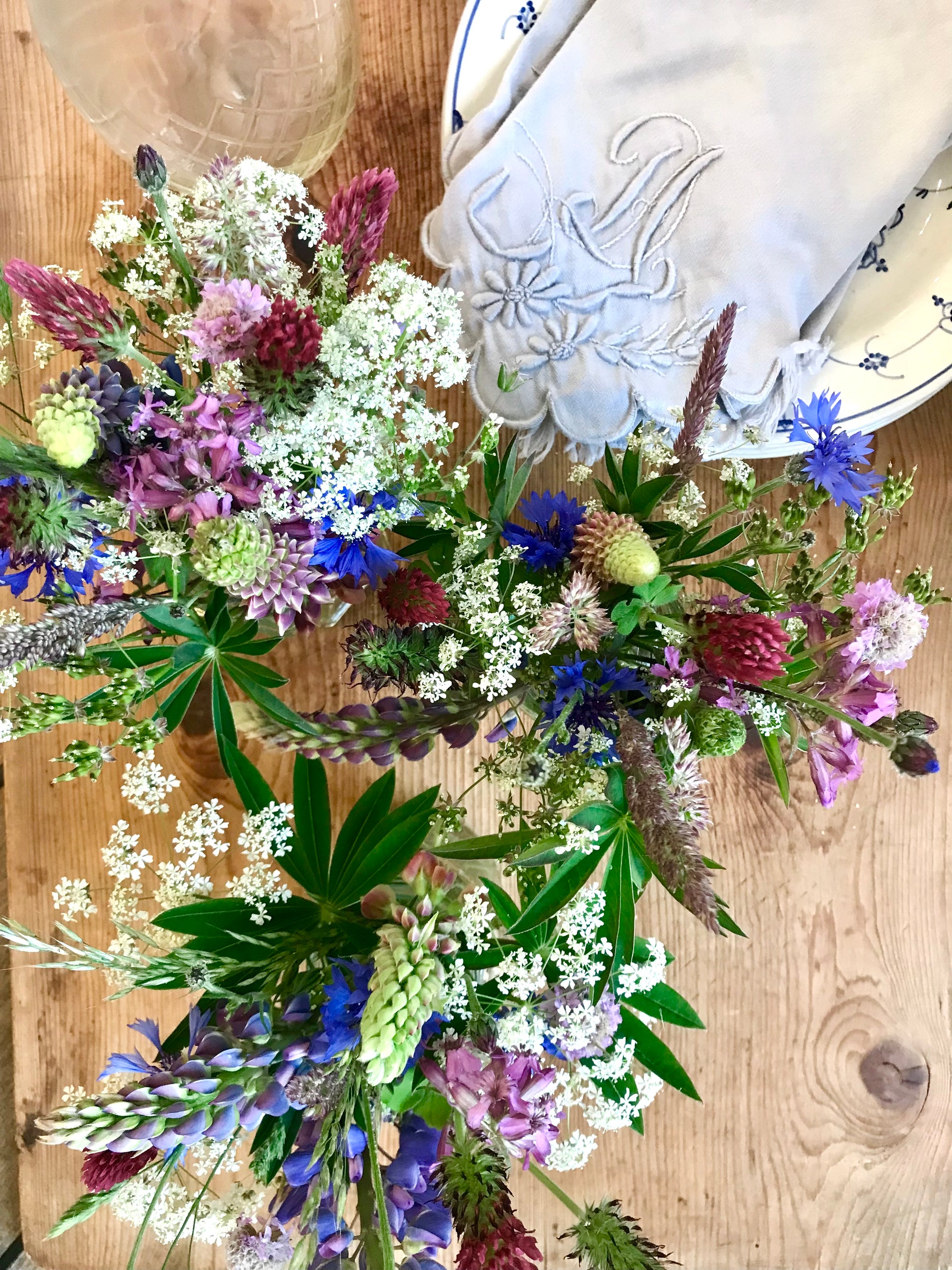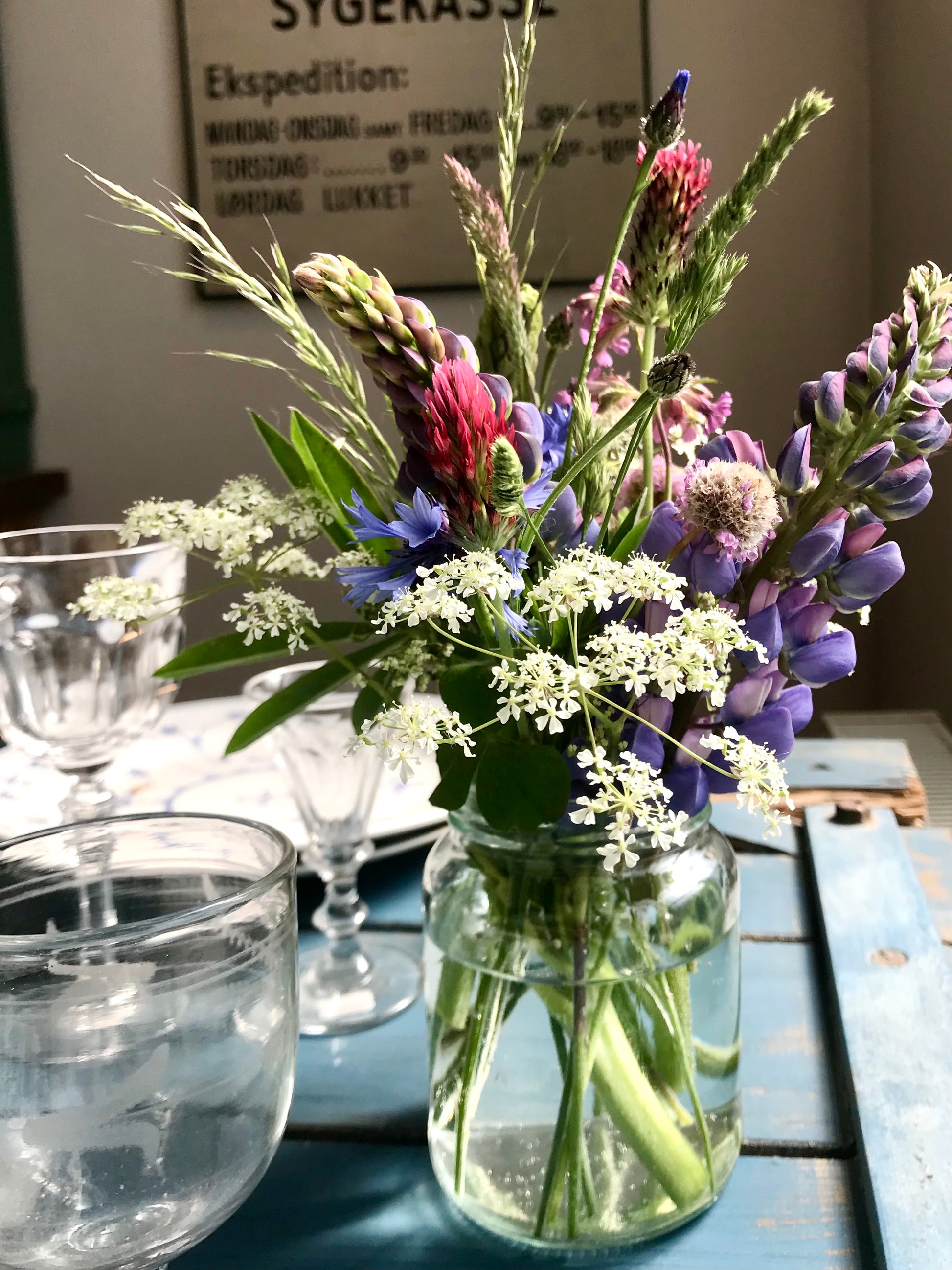 Blomster fra haven og naturen i bohemefarver i stort konservesglas. Der er 12-20 stilke i hvert glas. Med disse skønne buketter, skaber du nemt en let og uhøjtidelig stemning til brylluppet eller festen. Vi anbefaler 1 buket for hver 2 af de almindelige konservesglas med blomster for at give højde og fylde. Vi er i dialog med dig omkring blomster og farvenuancer.