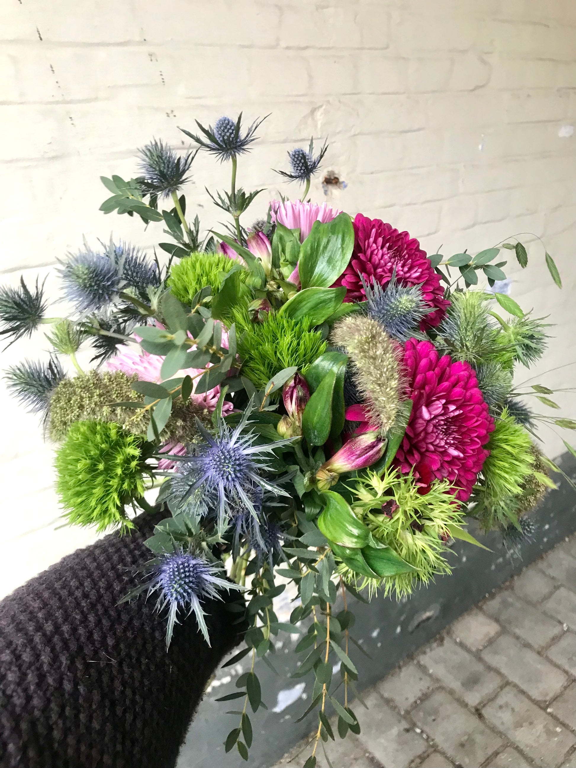 Buketten kan ikke sendes. Du kan hente den i gårdbutikken i åbningstiden eller efter aftale. Vi har gratis levering 1-2 gange ugentligt i Randers/forstæder, langs/i områderne omkring Udbyhøjvej, Hadsundvej og Mariagervej. Du kan også få den leveret til Liv & Stiil i Houmeden i Randers, og afhente den der. Kontakt os for næste levering på 41500509.