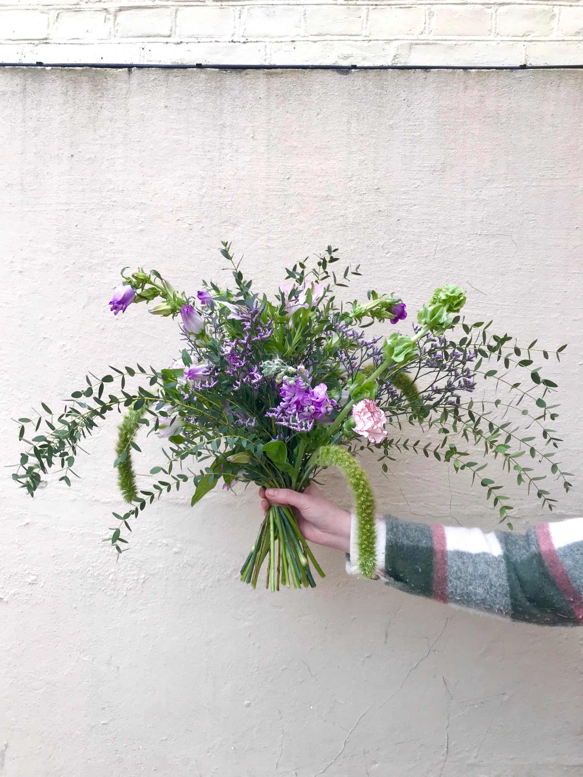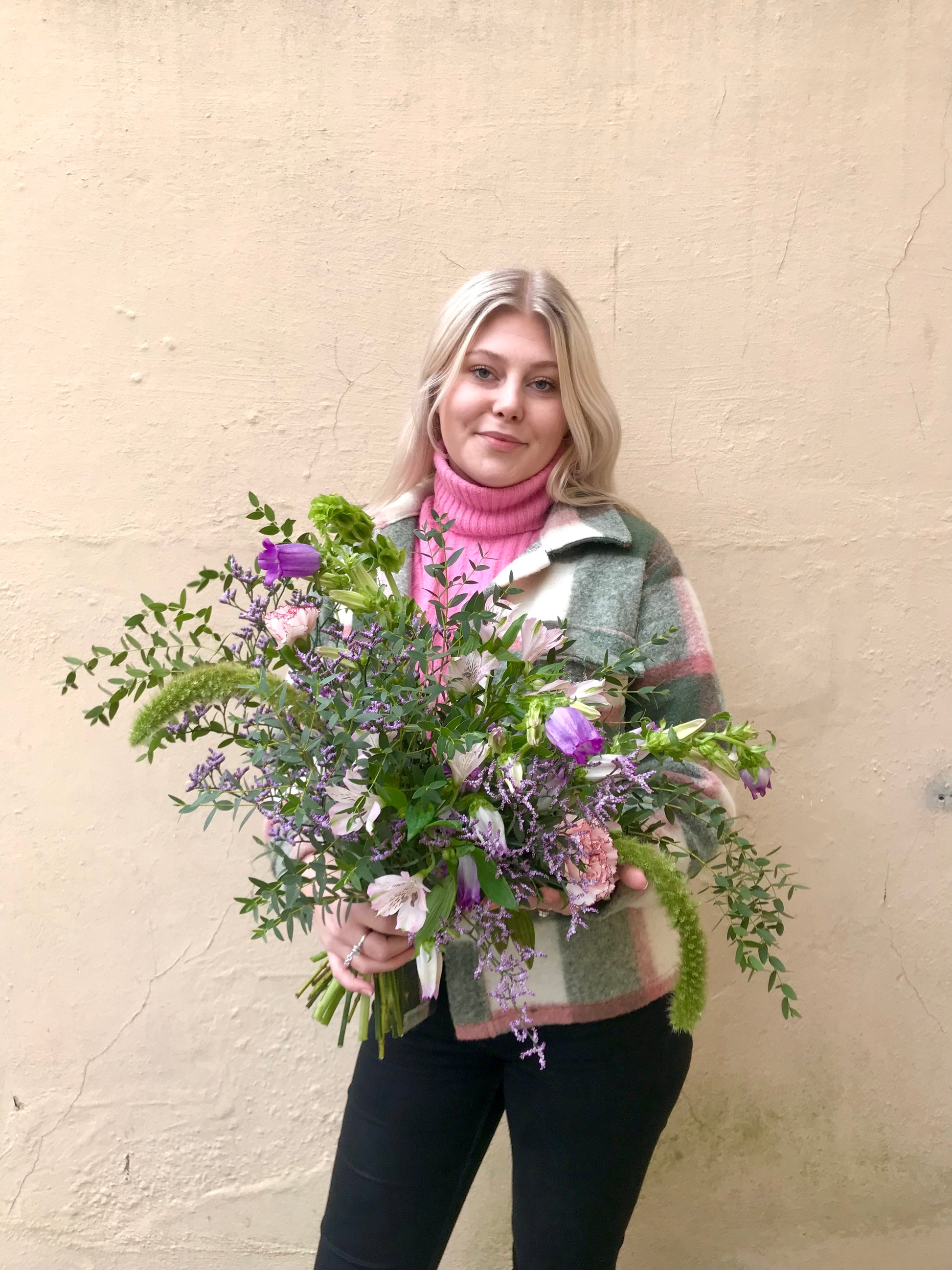 Skøn og samtidig let signaturbuket, der er stor og vild. Farverne i denne buket er aldrig for “vilde”. Vi sætter altid afstemte farver sammen, alt efter, hvad årstiden byder på.